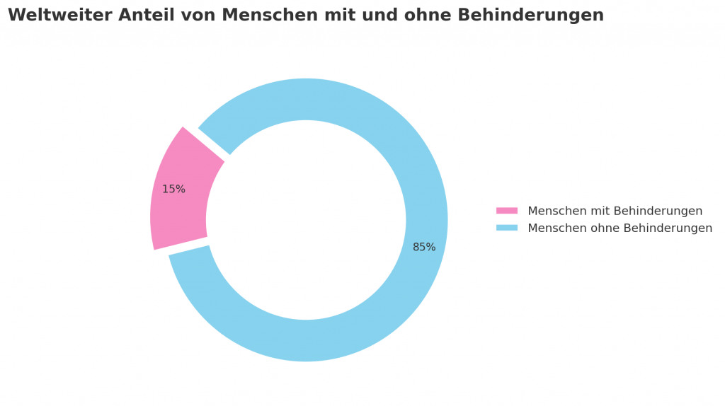 Weltweit leben etwa 15 % der Menschen mit einer Behinderung. In Deutschland liegt dieser Anteil bei rund 9,4 %, was etwa 7,8 Millionen Menschen entspricht. Diese Zahlen zeigen, dass ein großer Teil der Bevölkerung auf barrierefreie Angebote angewiesen ist.